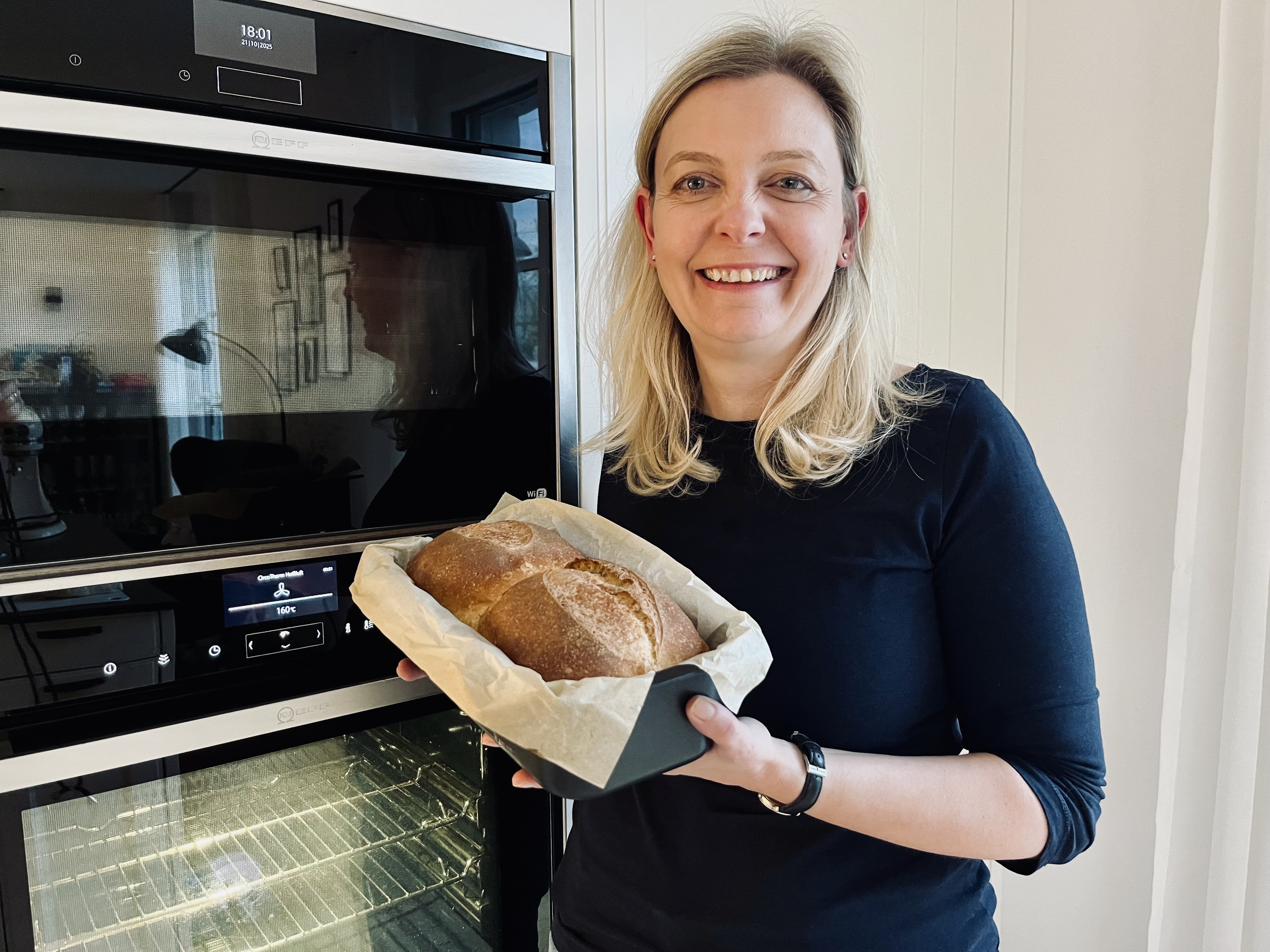 Das Brot wird für 10 Minuten bei 230°C bei mittlerer Schiene mit viel Dampf gebacken. Nach 10