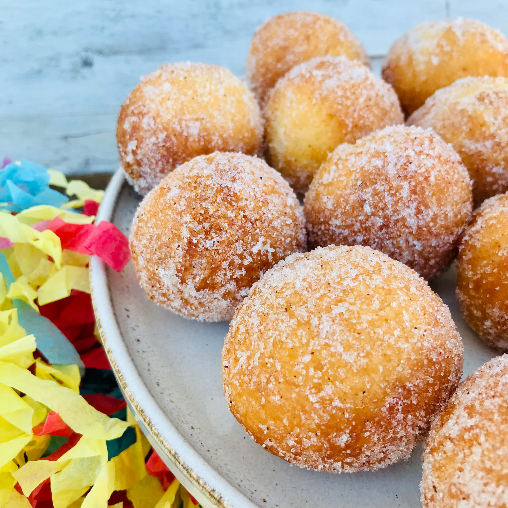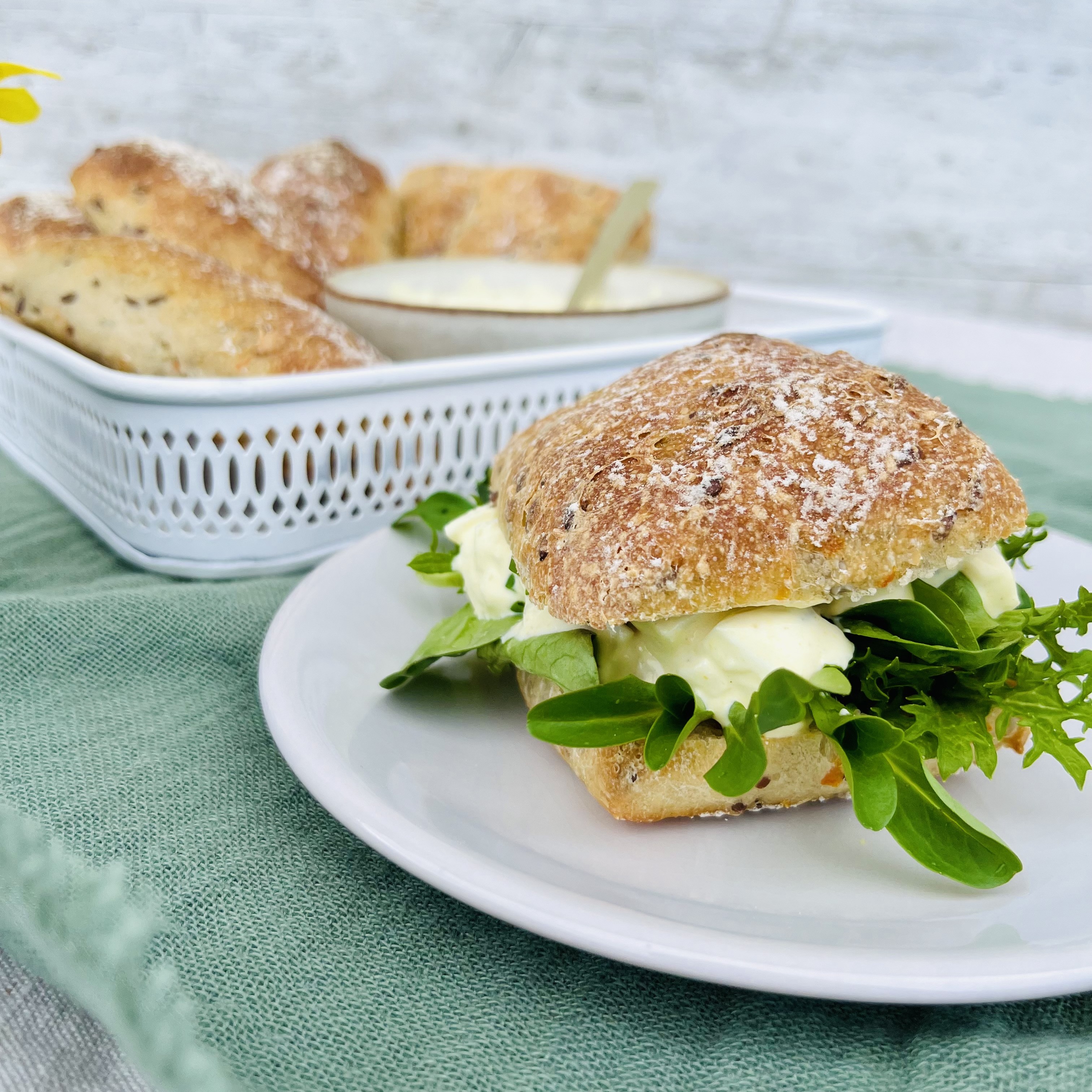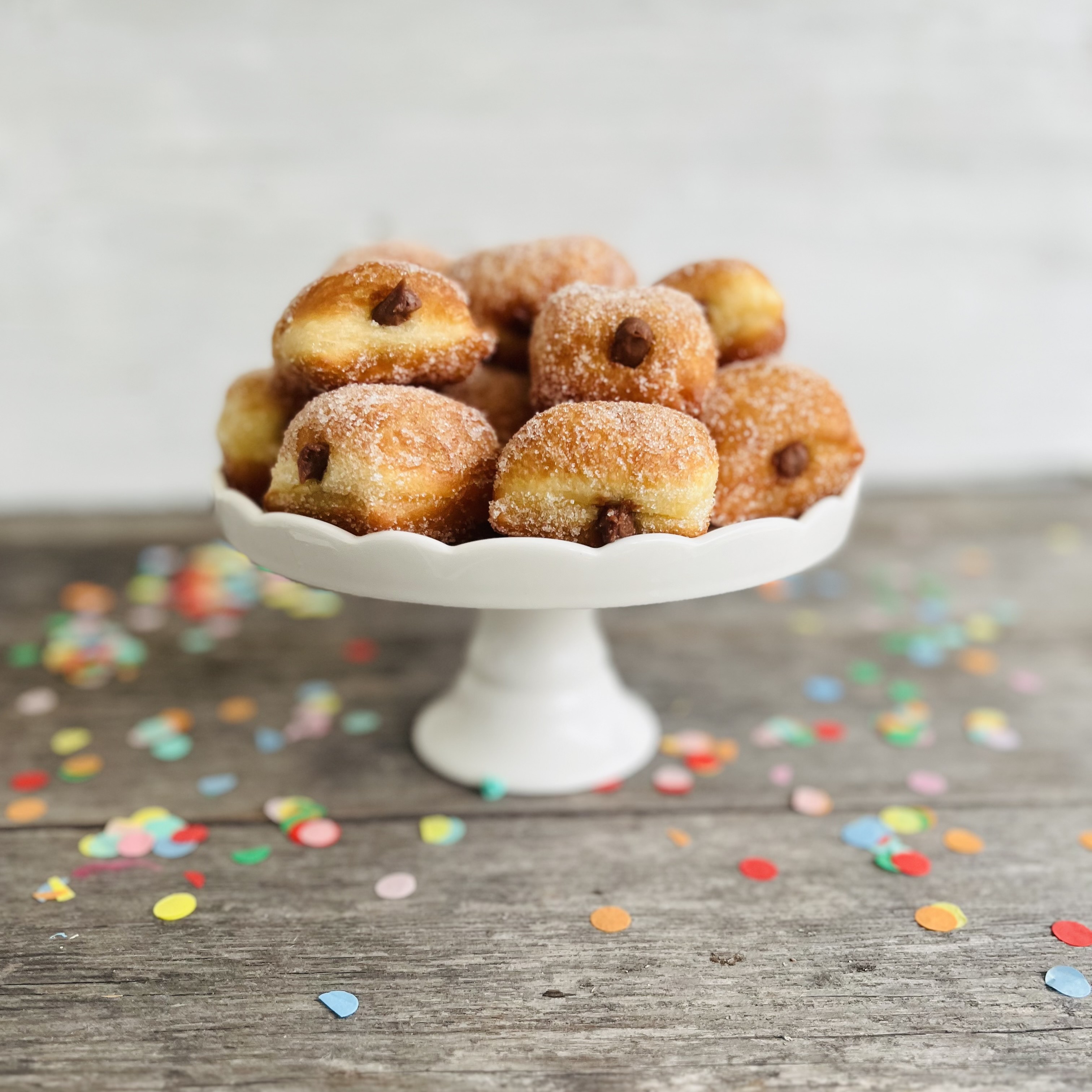 Die Eier werden mit dem Zucker, dem Vanillezucker und der Prise Salz in einer Rührschüssel mit einer Küchenmaschine oder einem Handmixer mindestens 5 Minuten schaumig gerührt. Das Öl wird in einem dünnen Strahl hinzugefügt und gut verrührt. In einer zweiten Schüssel wird das Mehl und das Backpulver vermischt und gesiebt. Beides wird mit Hilfe eines Schneebesens vorsichtig unter die Eiermasse gehoben.