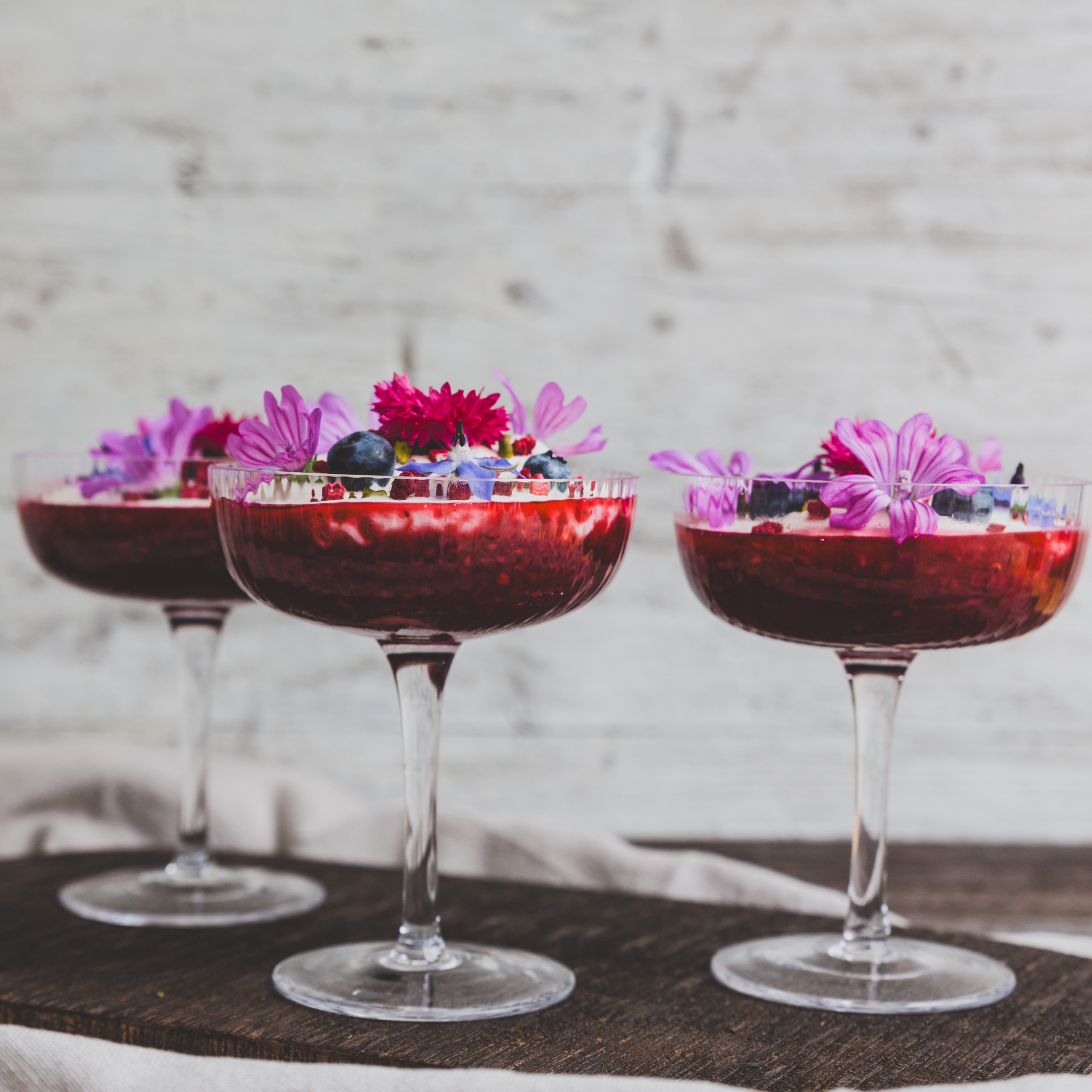 Die Beeren werden gemeinsam mit dem Zucker langsam in einem Topf aufgekocht, bis die Masse zu gelieren beginnt. Anschließend lässt man die Masse gut auskühlen und streicht sie auf den ausgekühlten Kuchen. Den Kuchen stellt man anschließend in den Kühlschrank.